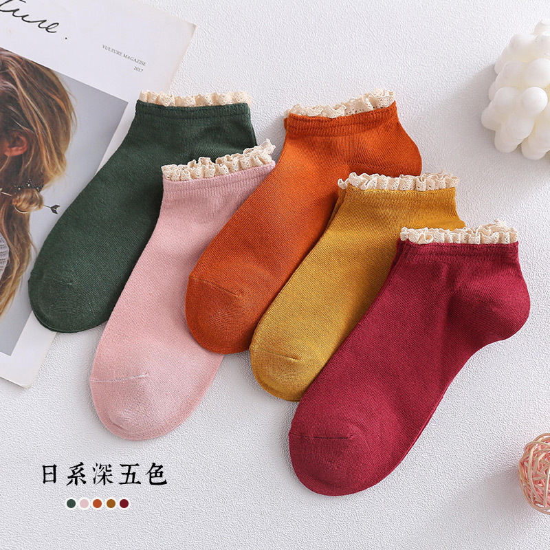 (5 Pairs)Woman Socks Ankle Socks Cotton Solid Color Cute Socks Breathable basic Sweet Low Cut Invisible boat Socks Girls Ladies Socks
