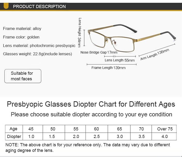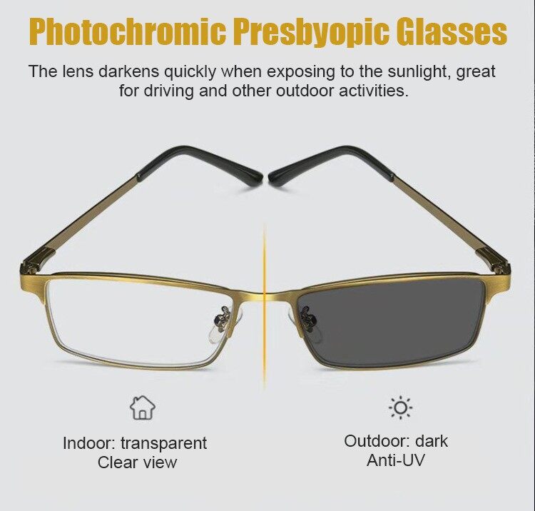 【3in1】Progressive Multifocal Reading Glasses Smart Zoom Anti-Blue Light Metal Frame Glasses Business Style Presbyopic Glasses