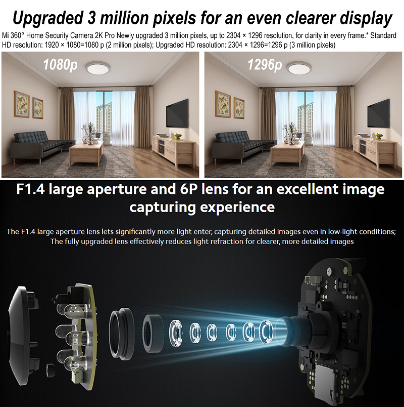 Mi Security Camera 2K / Mi Security Camera 2K Pro (Global Version) / Mi Security 2K Magnetic Mount | 360° Home View | 1296P Full HD| Facial Recognition | Motion Detection