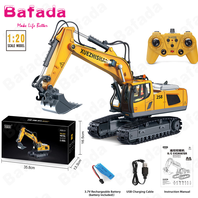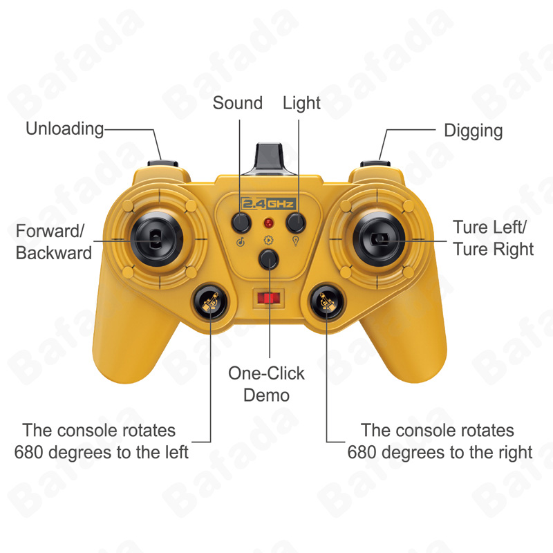 Bafada 1:20 High Simulation Remote Control Excavator RC Crawler Tractor Toy,270° Rotating Truck RC Car,6 Channel Construction Vehicle with Flashing Lights