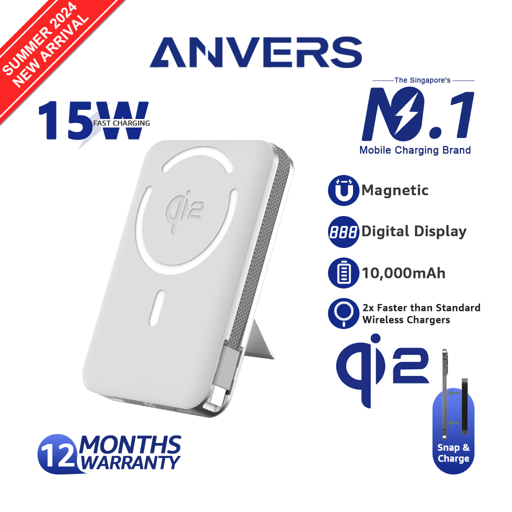 Anvers Magsafe Power Bank 10000mAh Wireless Magnetic Battery Pack Fast Charging Portable Charger for iPhone 16/15/14/13/12