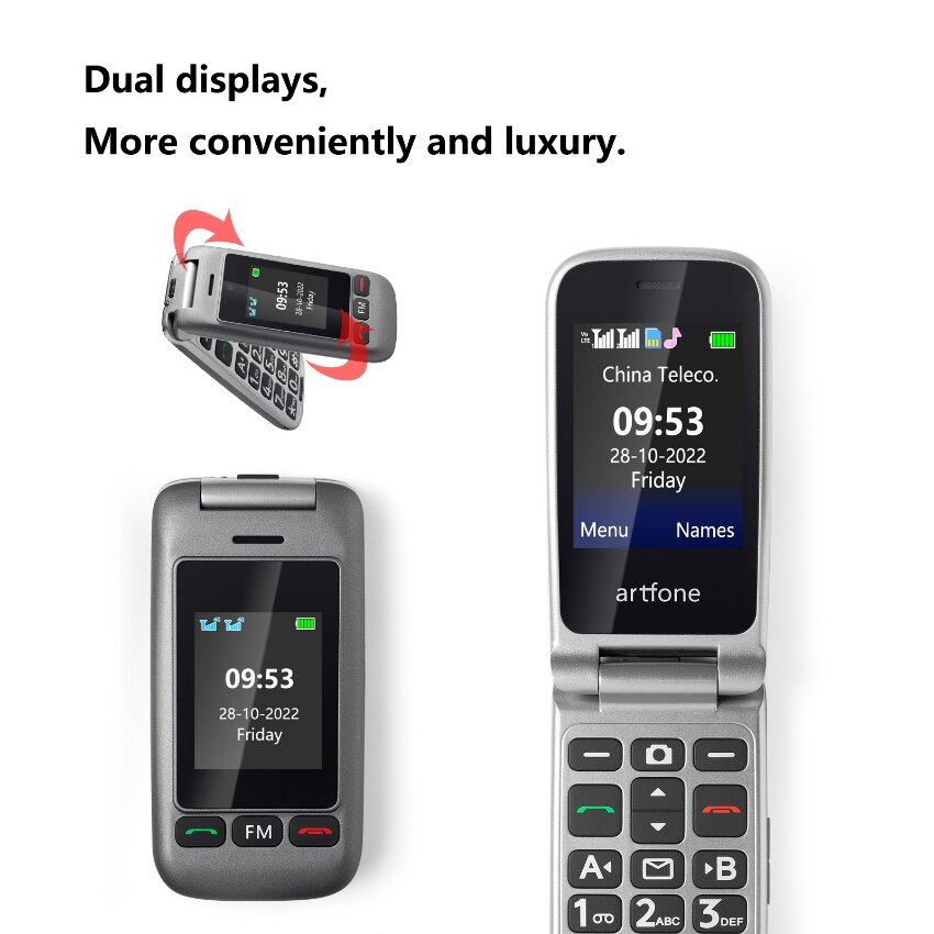 INOVAGEN 4G LTE Senior Flip Phone IN107,Speed Dial,Charging Dock,SOS Key,English and Chinese,2.4inch Color Dual LCD Display,Big Button,Big Font,Unlocked Senior Citizen Backup Phone