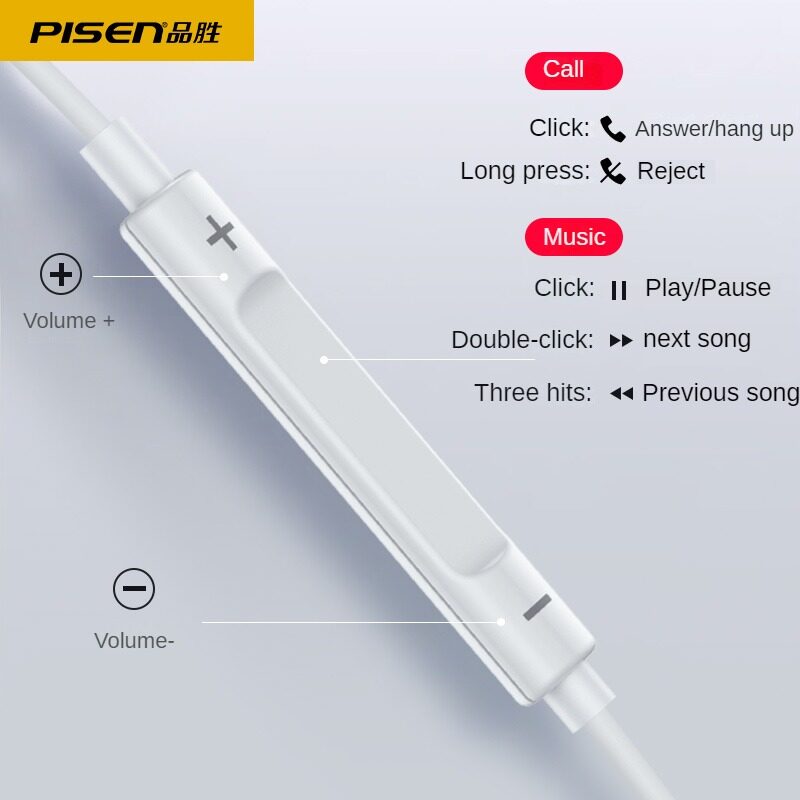 Pisen Wired Headphones In-Ear Type-C Wired Control Music Call Function Headphones for Samsung Huawei Xiaomi Android 3.5mm Half In-Ear Headphones
