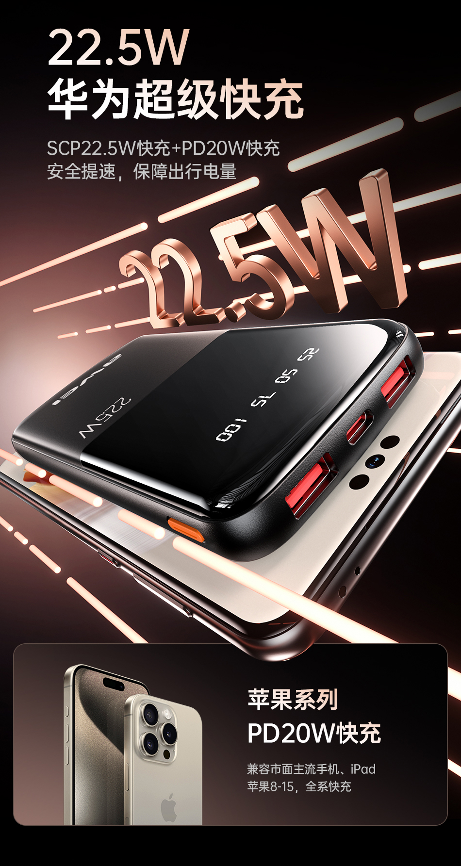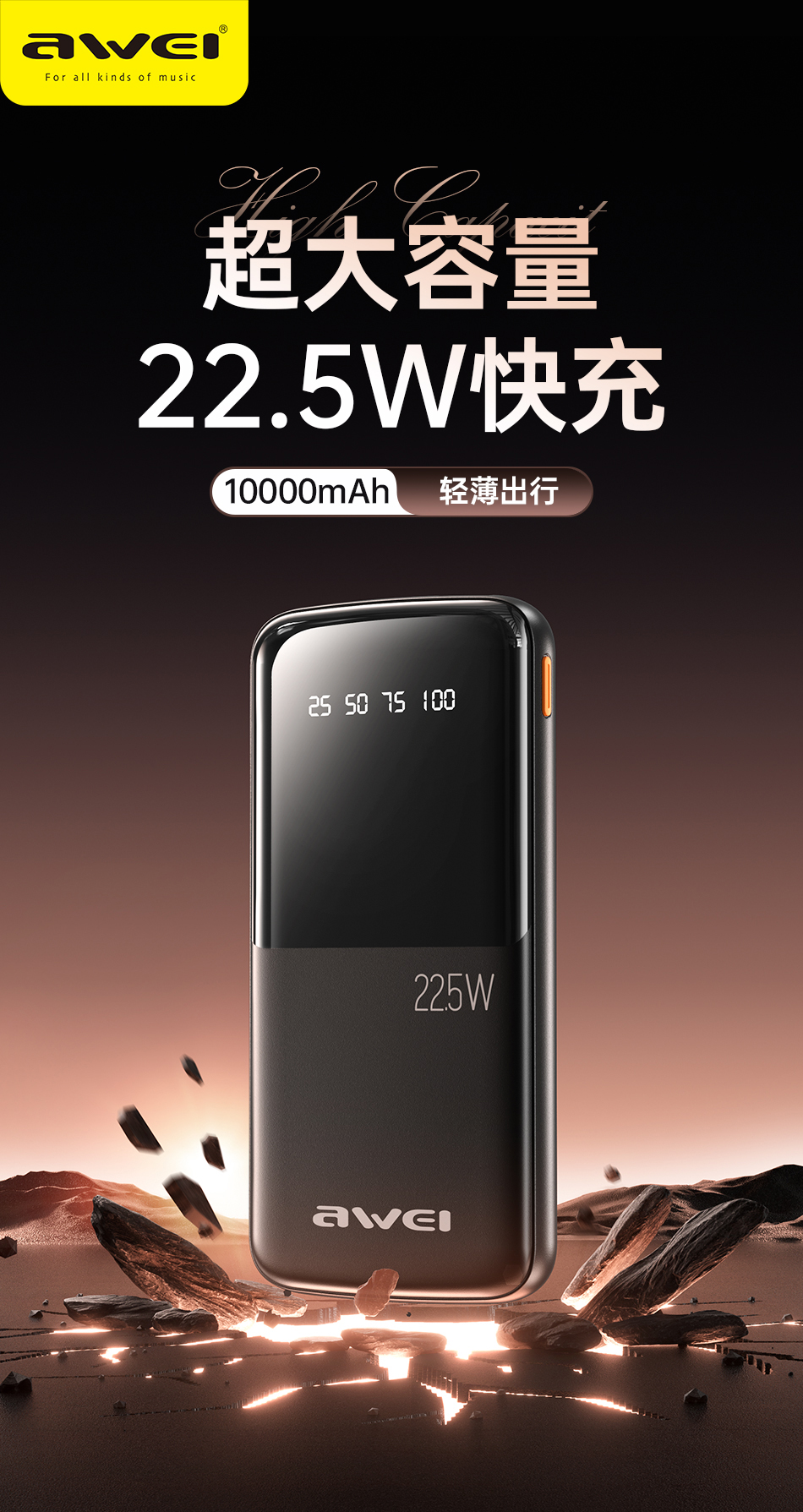 Awei P10K 10000mAh PD 22.5W Power bank fast charging 3 ports power banks LED Digital display powerbank for iPhone Samsung Pixel iPad