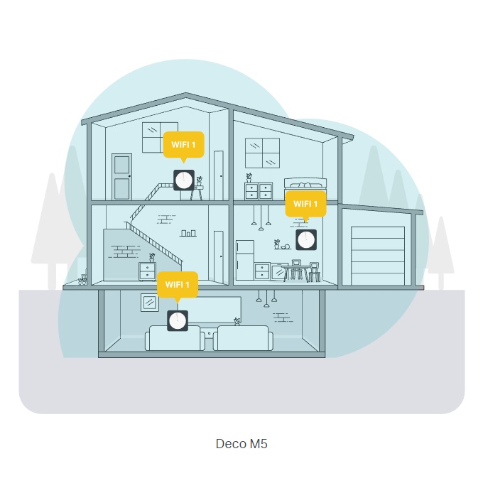 • Deco M5 provides fast and stable connections with speeds of up to 1267Mbps and works with any internet service provider (ISP) and modem.