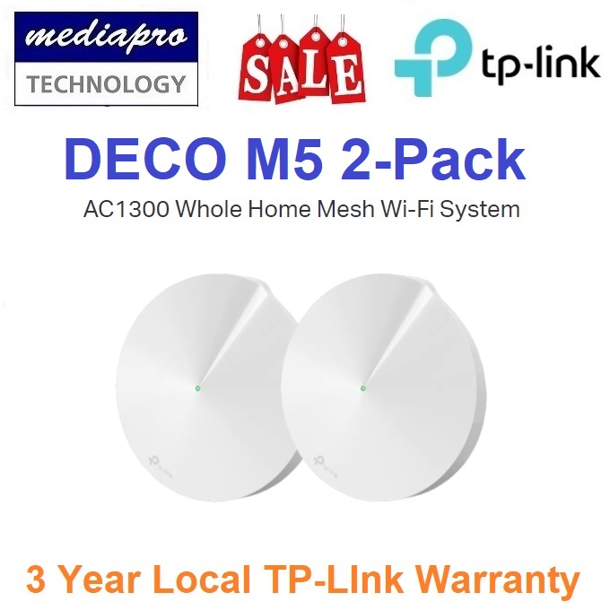 TP Link DECO M5 2-Pack WiFi MESH System ( Pack of 2 ) AC1300 Dual Band Gigabit MU-MIMO WiFi Mesh Router (Whole Home Mesh WiFi System) Works with all Telcos (Supports IPTV)- 3 Year Warranty by Local Ag
