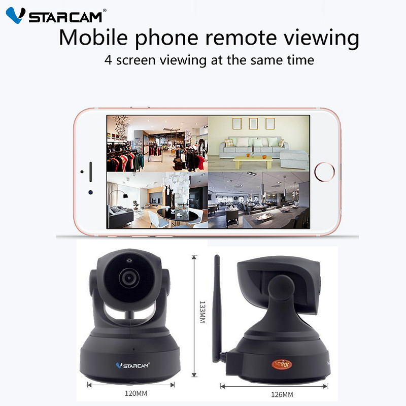 Upgraded 3MP Vstarcam Black C82R Wireless WiFi IP Camera with Auto Motion Tracking, IR-Cut Night Vision, 2-Way Audio CCTV Camera (App:Eye4)