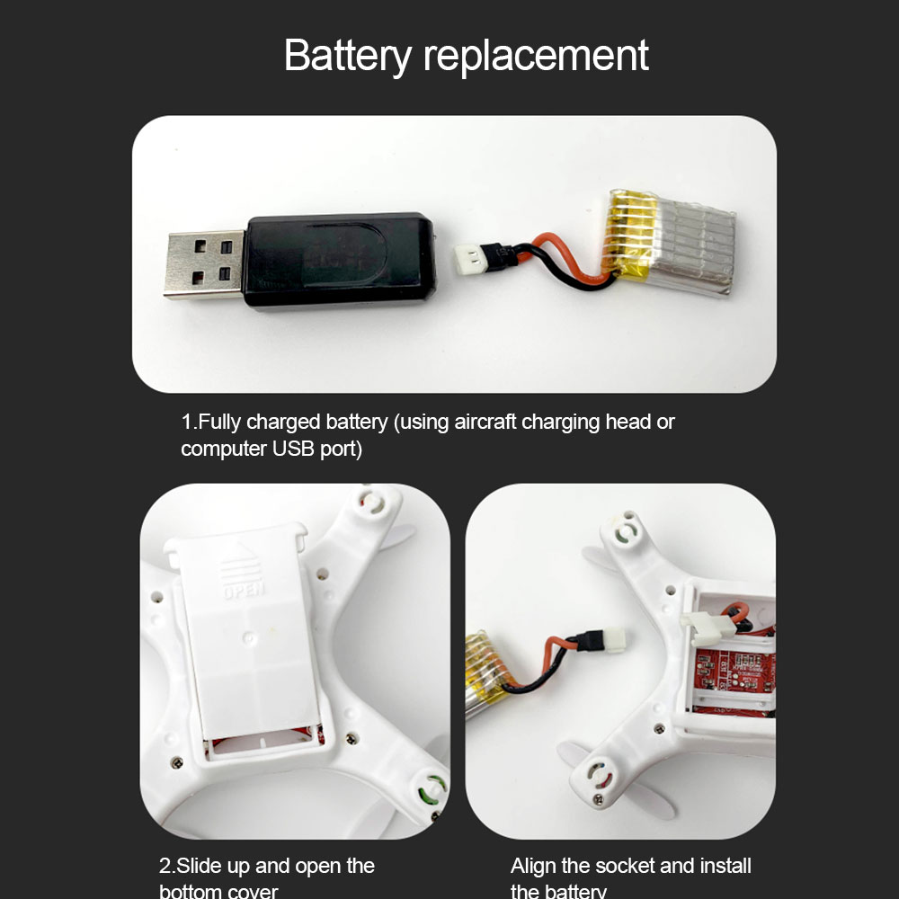 Function: up/down, left/right rotation, forward/backward, left/right lateral flight, headless mode, one-button return, barometer setting height, etc.