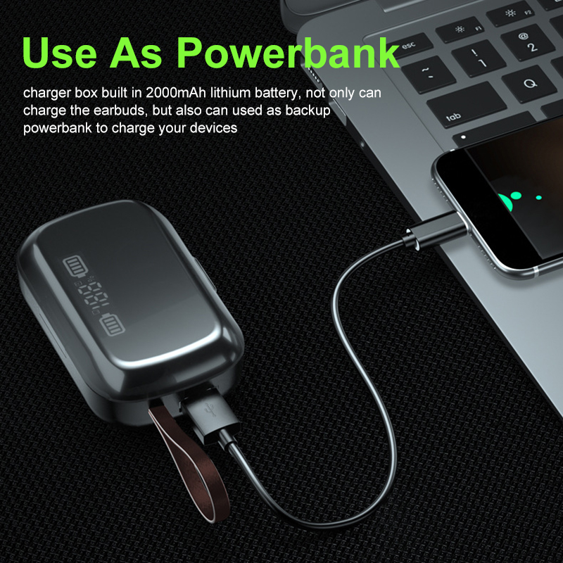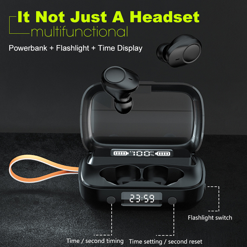 3). Multifunctional design, it not just two earphones, charger box integrated with flashlight, time display clock, meet your different daily needs.