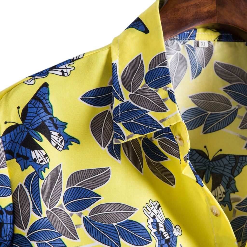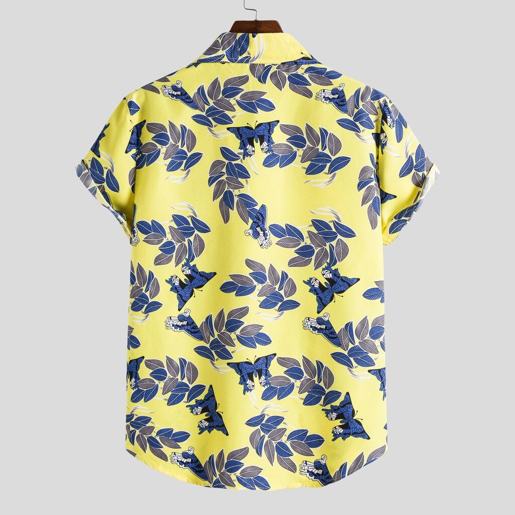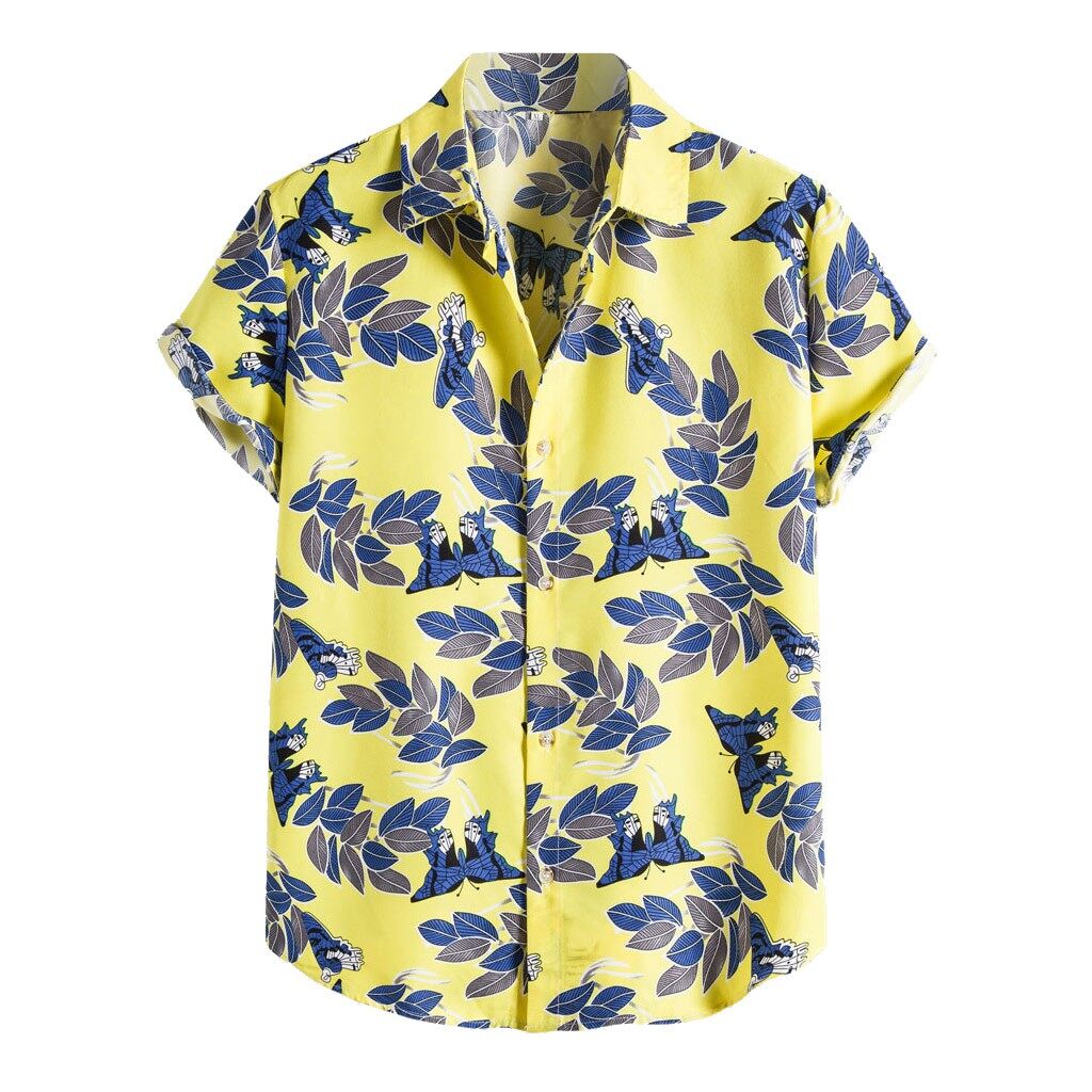 Mens Fashion Ethnic Short Sleeve Casual Printing Hawaiian Shirt Blouse T-shirt