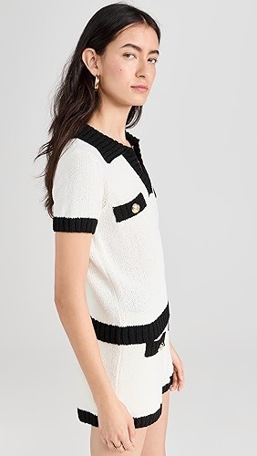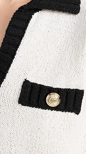Faux welt pockets with gold-tone logo buttons