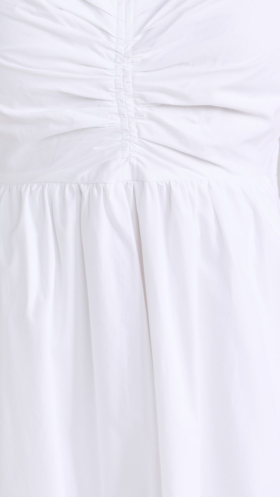 • Ruched bodice with smocked elastic back