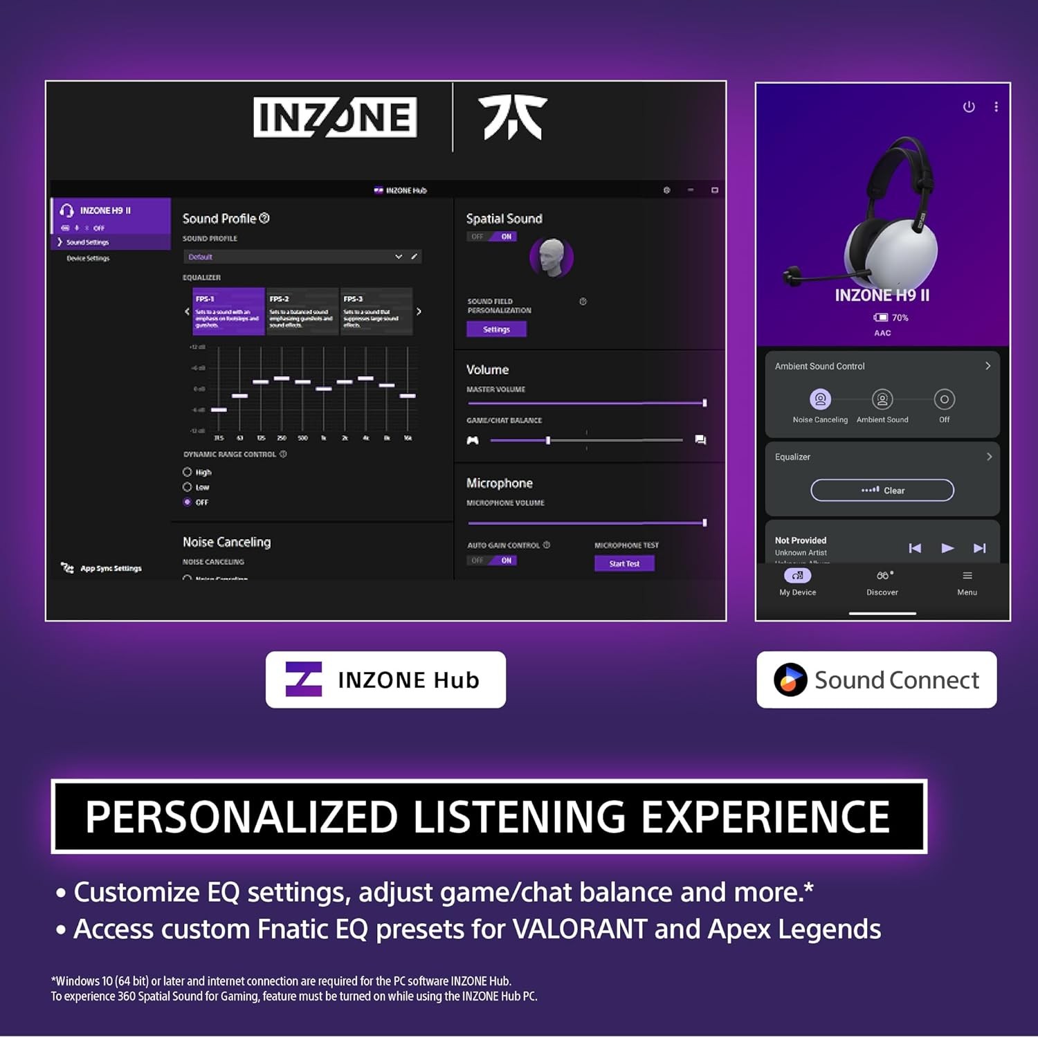 • CUSTOMIZABLE SOUND: Fine-tune your audio experience with EQ presets, spatial sound, and mic controls using the INZONE Hub software (PC/Windows) or Sony | Sound Connect App (Mobile).